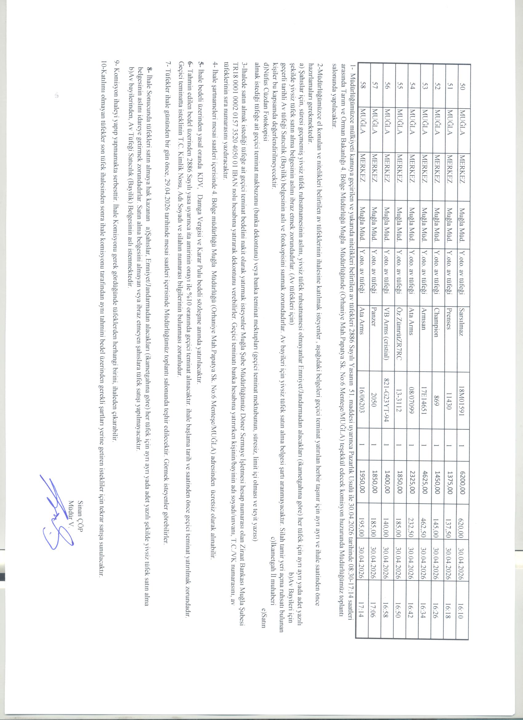 Av Tüfeği İhale İlanı